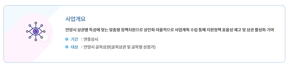 | 사업장 요건 | 안양 1번가, 평촌, 범계 등 지역 상권 내 점포 운영자 |