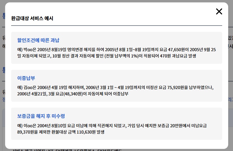 과거에 사용하던 휴대폰, 인터넷, IPTV, 알뜰폰 서비스의 미환급금을