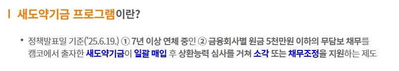 | 제도명 | 새도약기금 (장기연체자 채무조정) |