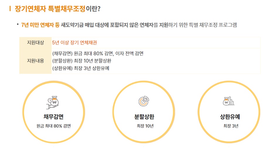 | 지원대상 | 3년 이상 장기연체 개인채무자 |