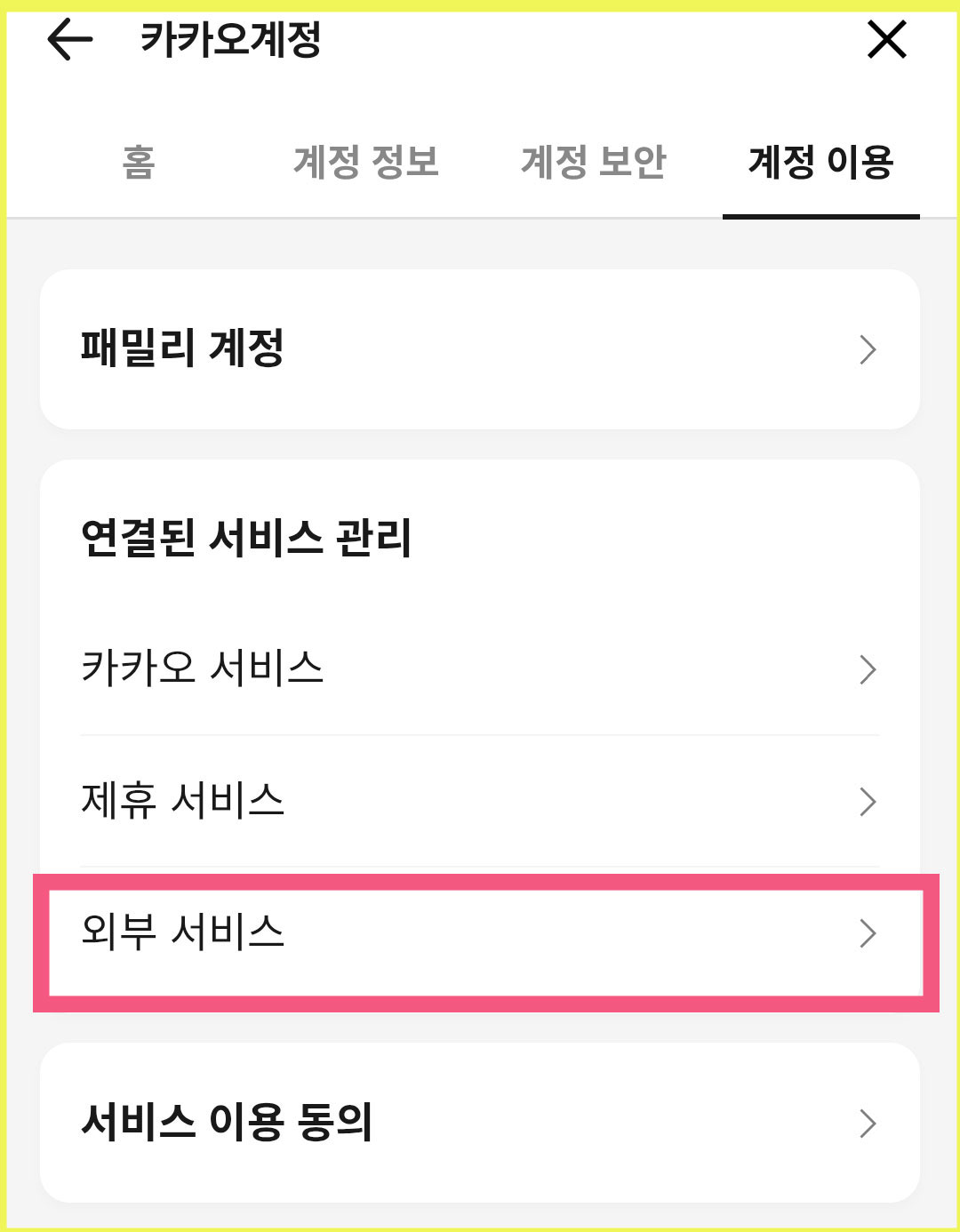 (2). 카카오 제휴서비스 외부서비스 연결 해제